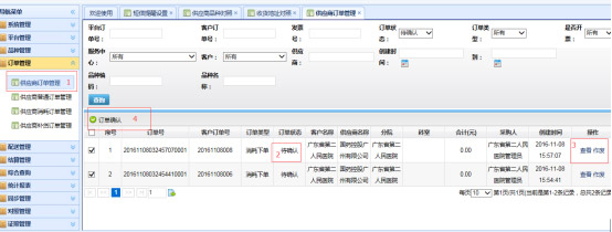 - 4)勾选‘待确认’的订单并点击‘订单确认’