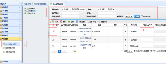 - 1)在对照管理下,点击‘供应商品种对照’节点
