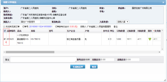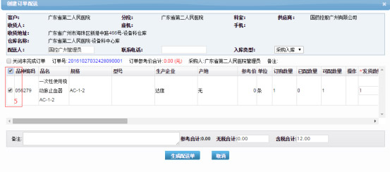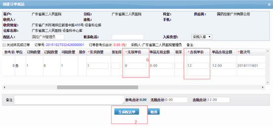 - 5)填写的字段有:配送数量,单价,批次号,品种效期,其他可不必填写。