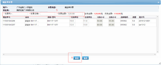 - 5)根据纸质发票填写‘发票号’‘发票日期’,核对‘发票金额’
